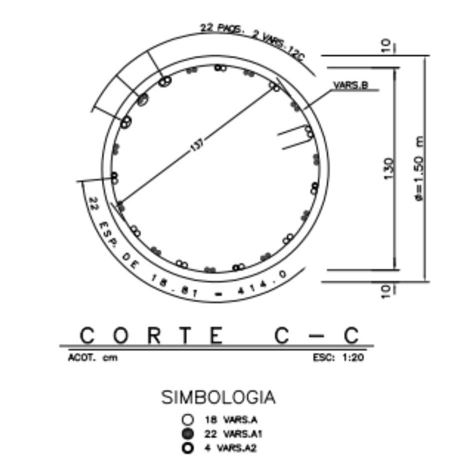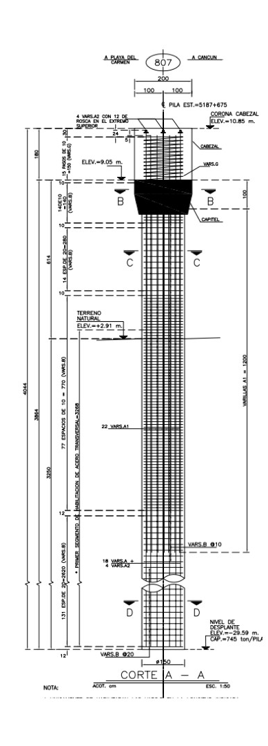 Sección circular de pila solicitada en proyecto, con fines estructurales a ejecutar en terreno, cálcico en península de Yucatán, México